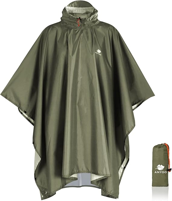 ANYOO Hooded Rain Poncho for Adults Waterproof Lightweight Rain Coat